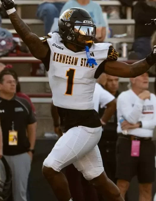 Home > NCAA FBS Uniforms > Kennesaw State Owls Football Uniform History Kennesaw State Owls Football Uniforms 2025 View every football uniform combination that Kennesaw St. wore during this year’s NCAA football season.Updated weekly throughout the 2025 season. Worn Week(s): 1, 9 Photo: Ksuowls.com Worn Week(s): 2 Photo: Inside the Hall Worn Week(s): 3, 7 Photo: KSU Owls Worn Week(s): 4 Photo: A State Red Wolves Worn Week(s): 5, 13 Photo: KSU Owls Worn Week(s): 10 Photo: KSU Owls Worn Week(s): 11, 15 (CUSA Championship) Photo: KSU Owls Worn Week(s): 12 Photo: Gadsden Times Worn Week(s): 14 Photo: Liberty Flames Worn Week(s): Myrtle Beach Bowl Photo: Kennesaw State University Athletics More Kennesaw State Season Uniforms 2025 KSU Uniforms 2024 KSU Uniforms 2023 KSU Uniforms