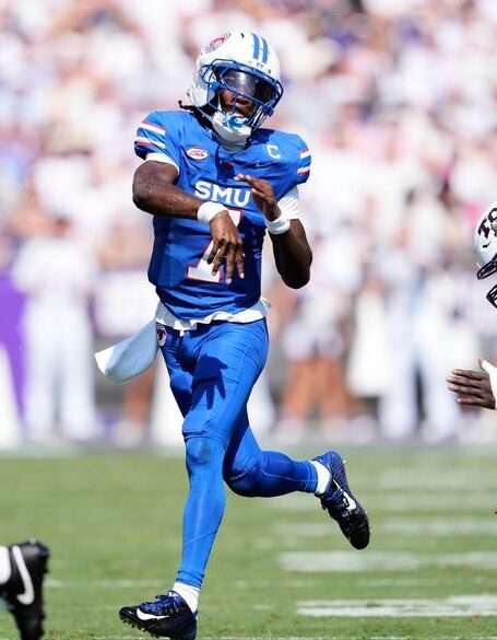 Home > NCAA FBS Uniforms > SMU Mustangs Football Uniform History SMU Mustangs Football Uniforms 2025 View every football uniform combination that SMU wore during this year’s NCAA football season.Updated weekly throughout the 2025 season. Worn Week(s): 1, 11 Photo: Yahoo Sports Worn Week(s): 2 Photo: AP News Worn Week(s): 3 Photo: SMU Athletics Worn Week(s): 4 Photo: MyMotherLode.com Worn Week(s): 6, 10 Photo: SMU Mustangs Worn Week(s): 7 Photo: SMU Mustangs Worn Week(s): 8 Photo: Greenville Online Worn Week(s): 9 Photo: SMU Mustangs Worn Week(s): 13 Photo: SMU Mustangs Worn Week(s): 14 Photo: AP News Worn Week(s): Holiday Bowl Photo: USA Today More SMU State Season Uniforms 2025 SMU Uniforms 2024 SMU Uniforms 2023 SMU Uniforms