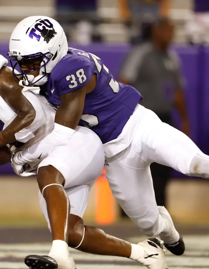 Home > NCAA FBS Uniforms > TCU Horned Frogs Football Uniform History TCU Horned Frogs Football Uniforms 2025 View every football uniform combination that TCU wore during this year’s NCAA football season.Updated weekly throughout the 2025 season. Worn Week(s): 1, 7 Photo: WRAL Sports Fan Worn Week(s): 3 Photo: Frogs O’ War Worn Week(s): 4 Photo: MyMotherLode.com Worn Week(s): 5, 13 Photo: AZ Central Worn Week(s): 6 Photo: National Football Post Worn Week(s): 8 Photo: Frogs O’ War Worn Week(s): 9 Photo: Frogs O’ War Worn Week(s): 11 Photo: Des Moines Register Worn Week(s): 12 Photo: Go Frogs Worn Week(s): 14 Photo: TCU 360 Worn Week(s): Alamo Bowl Photo: Yahoo Sports More TCU Season Uniforms 2025 TCU Uniforms 2024 TCU Uniforms 2023 TCU Uniforms